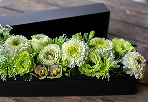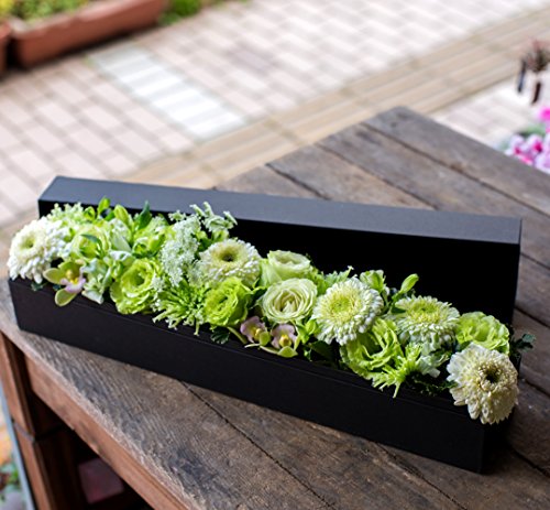 アレンジメントフラワー ギフト サプライズ BOX フラワー ワイドロング型 ( 白 グリーン 系 )