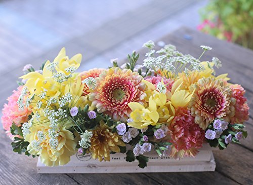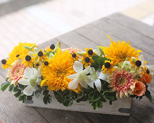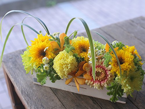 デザイナー お任せ 横長 アレンジメント M サイズ ( イエロー オレンジ 系 )