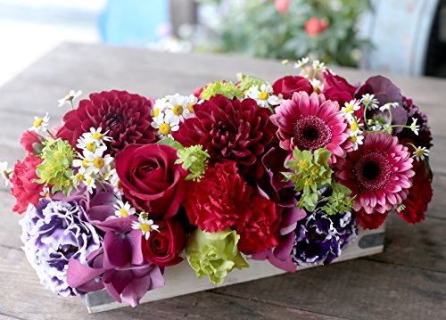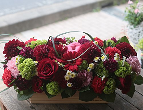 デザイナー お任せ 横長 アレンジメント L サイズ ( レッド 系 )