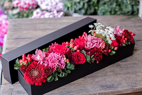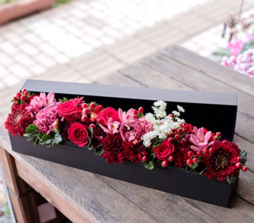 アレンジメントフラワー ギフト サプライズ BOX フラワー ワイドロング型 ( レッド 系 )