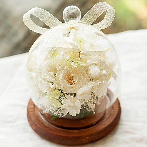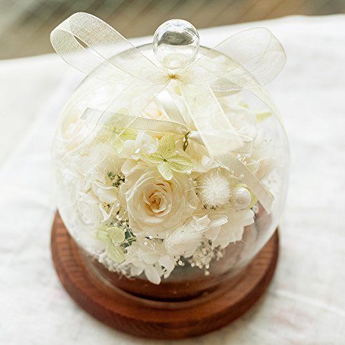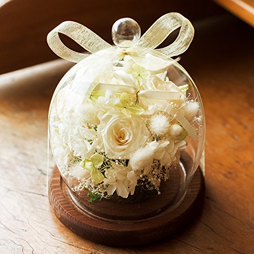 プリザーブドフラワー ガラスドーム ギフト Lサイズ (アンティークホワイト) ガラスの森~ローズシュシュ~