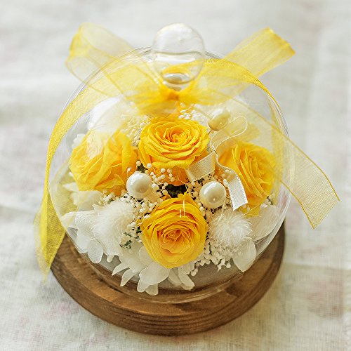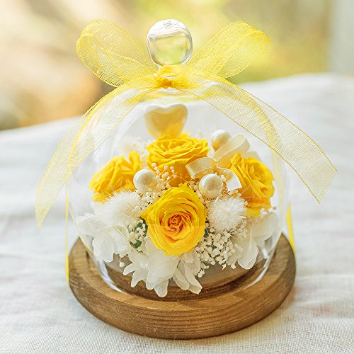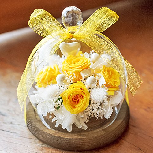 プリザーブドフラワー ガラスドーム ギフト Mサイズ (ミモザイエロー) ガラスの森~ローズシュシュ~