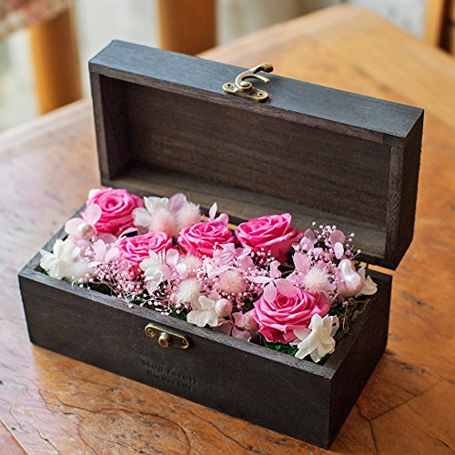 - 【BOX】アンティーク調の留め具付きBOXがお花を引き立てます。