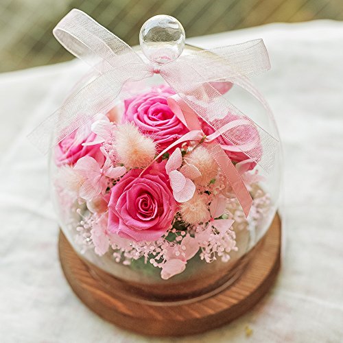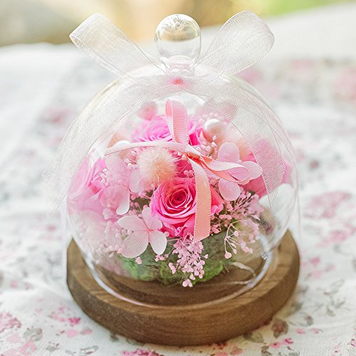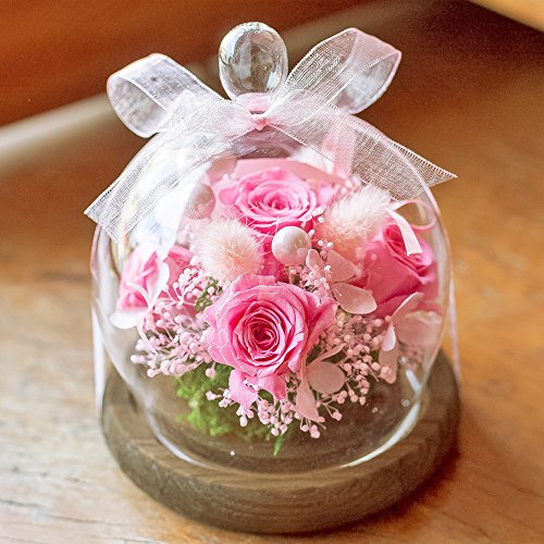 プリザーブドフラワー ガラスドーム ギフト Mサイズ (プリンセスピンク) ガラスの森~ローズシュシュ~