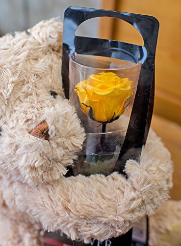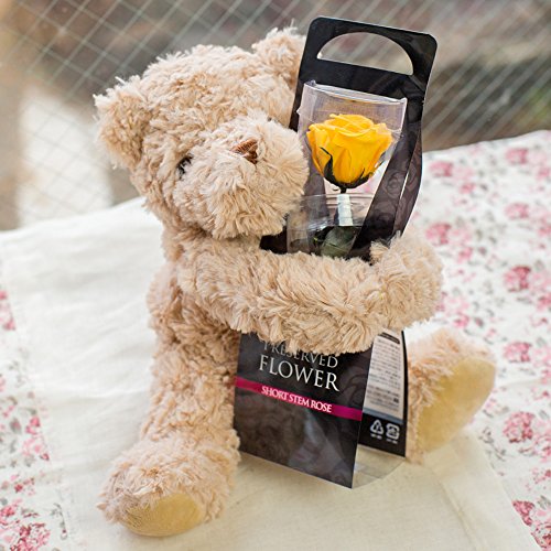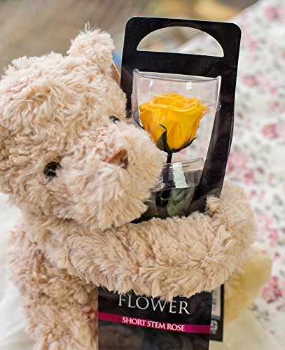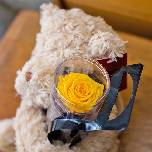 プリザーブドフラワー 1輪のローズプリザと抱っこ ベア (ゴールデンイエロー) バラ と くま の プチ ギフト
