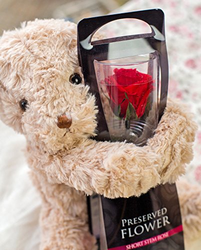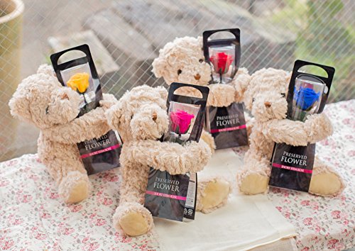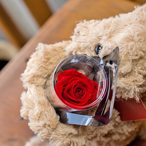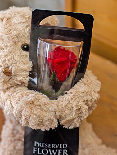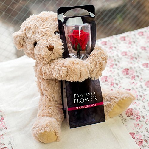 プリザーブド フラワー 1輪 の ローズ プリザ と 抱っこ ベア ( チェリー レッド )