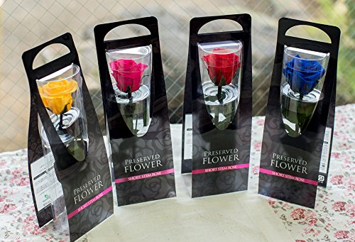 ケースに入れたままでも飾れるローズプリザーブドは鮮やかな4色展開。