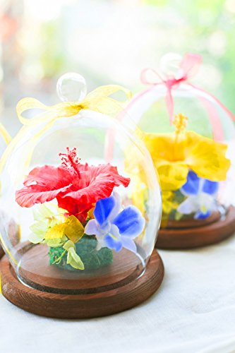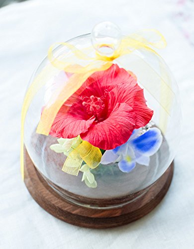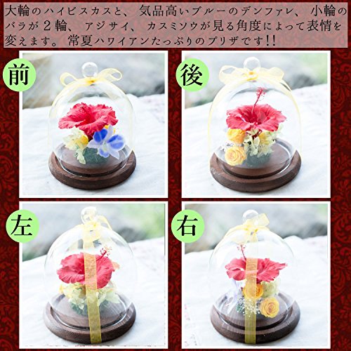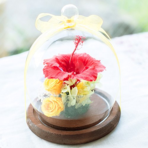 プリザーブドフラワー ガラスドーム ギフト (ハワイアンレッド) ガラスの森~ハイビスカスの雫~