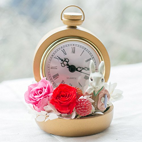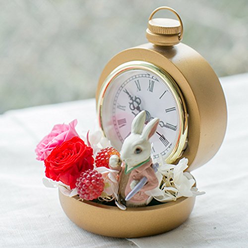- 【ギフト】不思議の国のアリス 白うさぎの時計プリザ