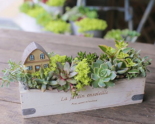 多肉植物 寄せ植え セット ( ハウス ) 横長 ウッド BOX ( M サイズ ) 観葉植物