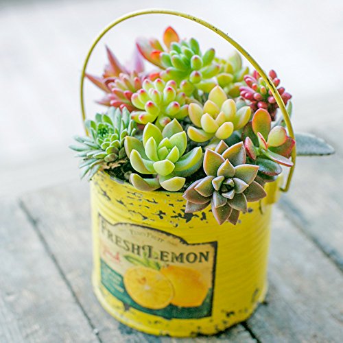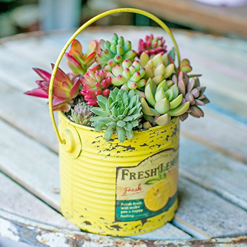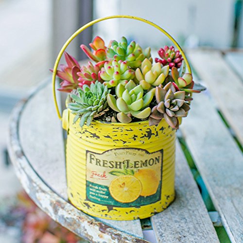 多肉植物 寄せ植え taniku フルーツビンテージ缶 ラウンド Lサイズ ( フレッシュ レモン 柄 )