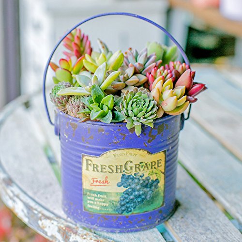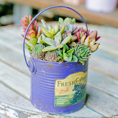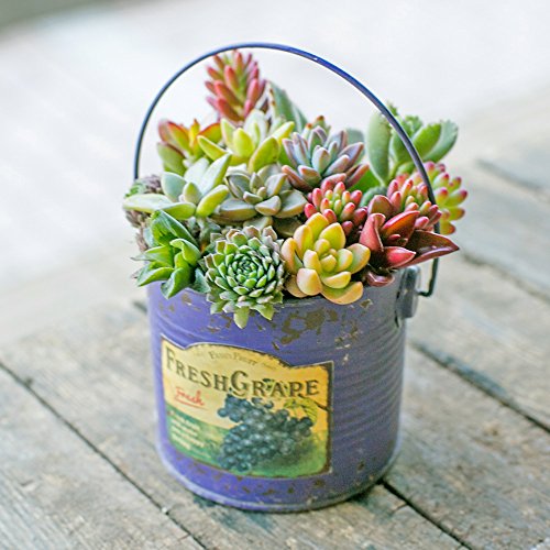 多肉植物 寄せ植え taniku フルーツビンテージ缶 ラウンド Lサイズ ( フレッシュ グレープ 柄 )