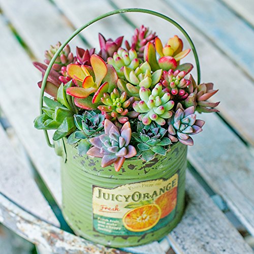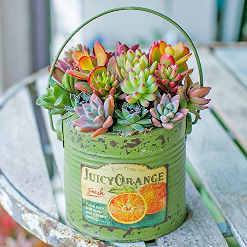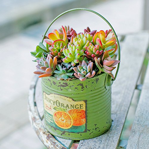 多肉植物 寄せ植え taniku フルーツビンテージ缶 ラウンド Lサイズ ( ジューシー オレンジ 柄 )