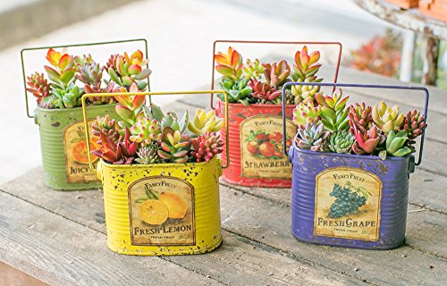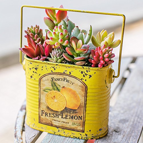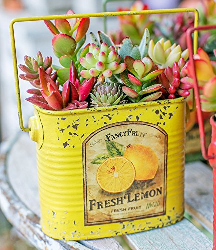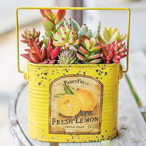 多肉植物 寄せ植え taniku フルーツビンテージ缶 スクエア Mサイズ ( フレッシュ レモン 柄 )