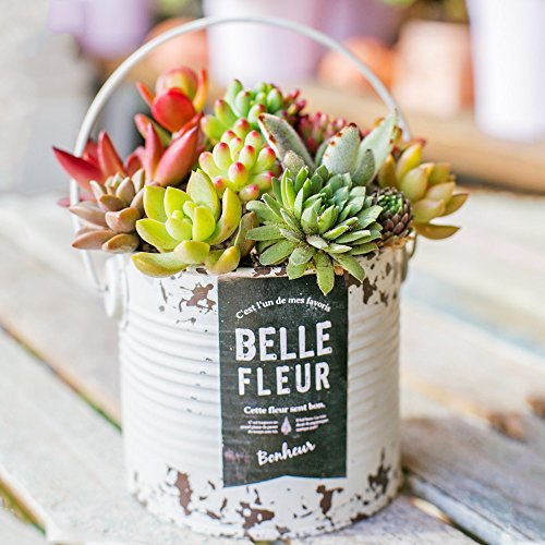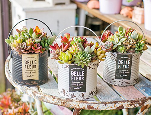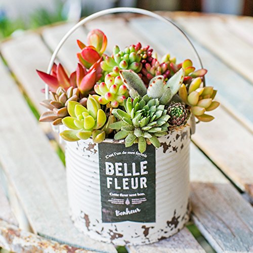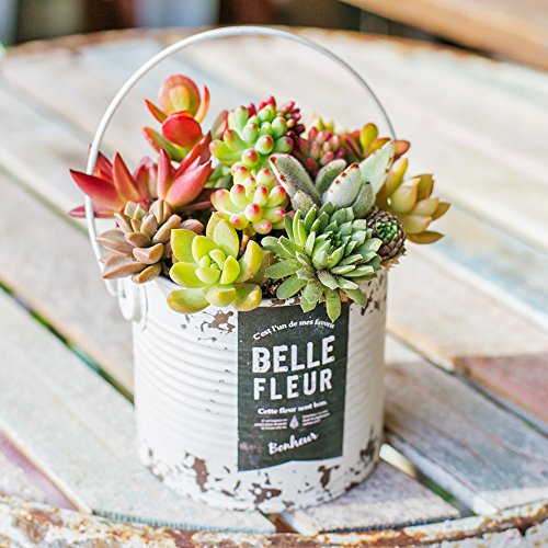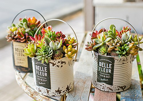 多肉植物 寄せ植え taniku シャビー ラベル 缶 ラウンド Lサイズ ( ホワイト 柄 )