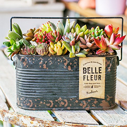 多肉植物 寄せ植え taniku シャビー ラベル 缶 スクエア Lサイズ ( ブラック 柄 )