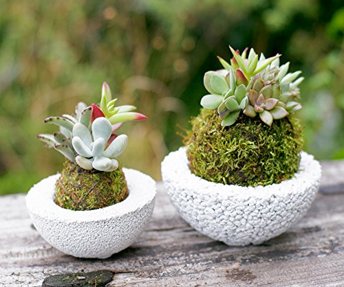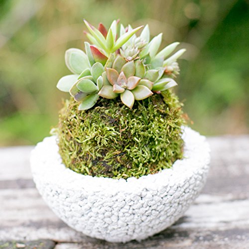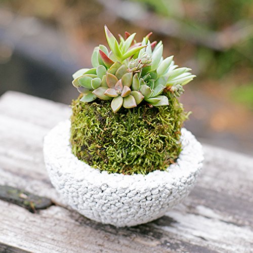 多肉植物 苔玉 koke-pochi シリーズ ~多肉植物の苔玉わん~ Mサイズ ホワイト