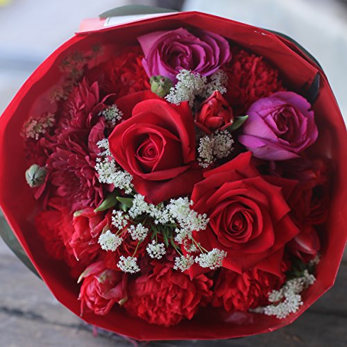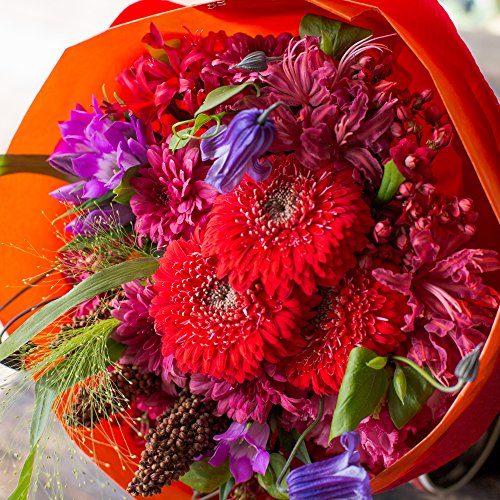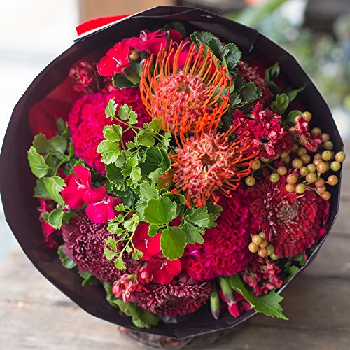 花束 フラワー 生花 大臣賞受賞 デザイナー ( レッド 系 ) お任せ 花 束 Mサイズ