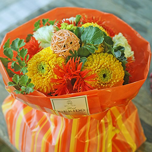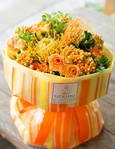 花束 ギフト 自立 する花束 Lサイズ ( イエロー オレンジ )不思議な花束 生花 ブーケ