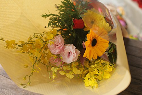 花束 ギフト 縦長 Mサイズ ( イエロー オレンジ 系 ) デザイナーおまかせ