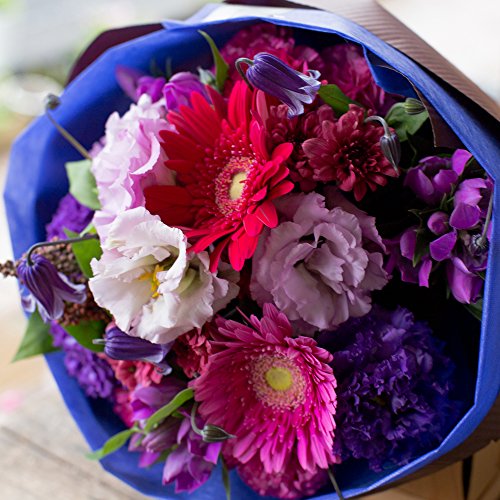花束 生花 ギフト Mサイズ ( ブルー パープル 系 ) 大臣賞受賞 デザイナー お任せ花束