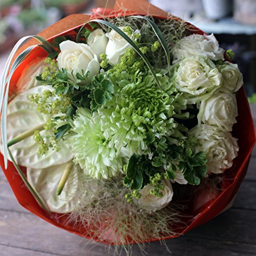 花束 生花 ギフト 5Lサイズ ( ホワイト グリーン 系 ) 大臣賞受賞 デザイナー お任せ花束