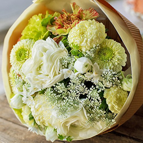 花束 生花 ギフト 3Lサイズ ( ホワイト グリーン 系 ) 大臣賞受賞 デザイナー お任せ花束
