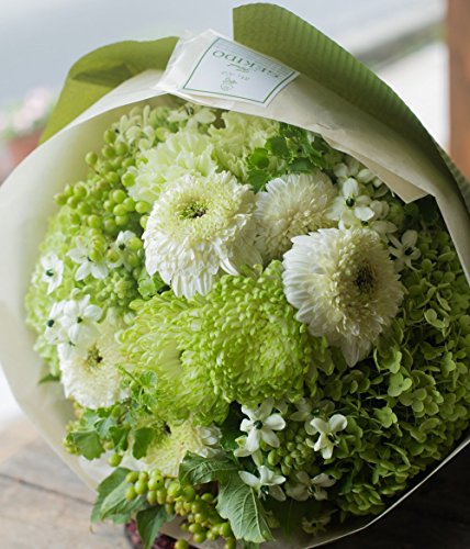 【 クール便 】 花束 生花 ギフト Mサイズ ( ホワイト グリーン 系 ) 大臣賞受賞 デザイナー お任せ花束