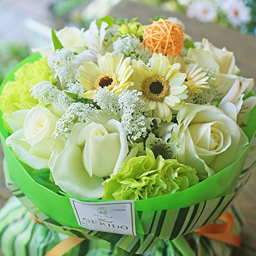 【 クール便 】 花束 ギフト 自立 する花束 Lサイズ ( ライム ホワイト )不思議な花束 生花 ブーケ