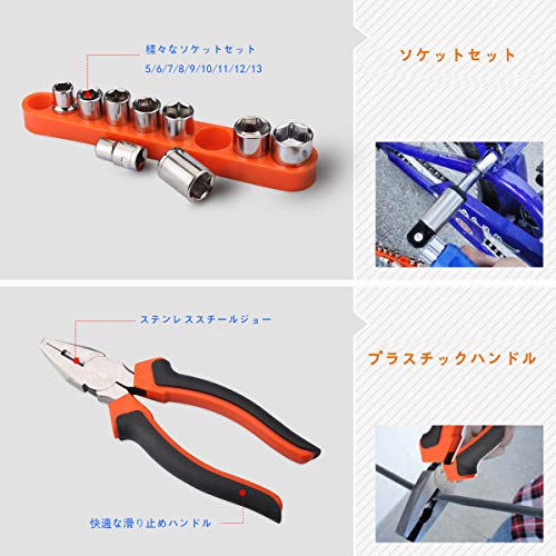 - 「耐久性がある工具セット」品質が高いDIYとバイクの整備に必須の工具セット。必要な時に個別に買っていくと、結構な値段になるうえに同じツールを重複して買ってしまったり、きれいに収納できないといった悲しいことに。工具セットを選択するのはお得です。ストレスのないDIY生活と充実したオートバイライフを!