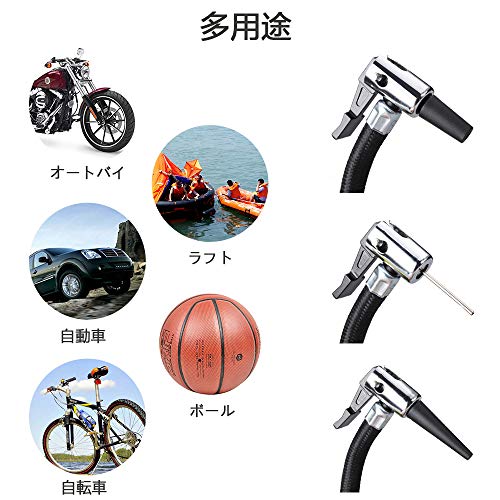 - 【ノズル付き&多車種対応】3種類のアダプターノズルが付属します。一般的な自転車から自動車、オートバイ、ボール、浮き輪、レジャー用品などご利用いただけます。