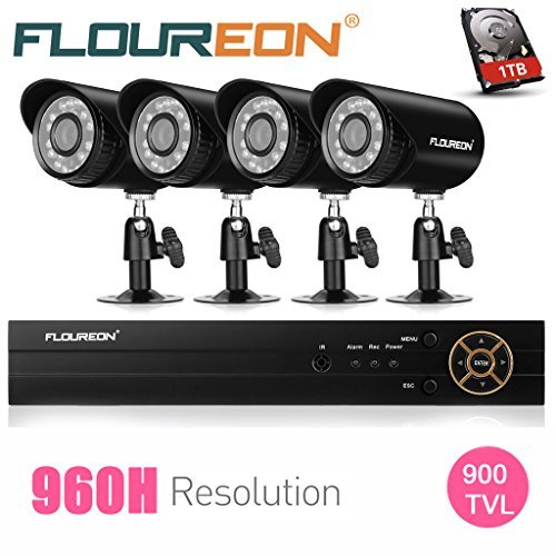 FLOUREON 1 X 8CH 960H CCTV DVR + 4 X Outdoor 900TVL Bullet Camera + 1TB HDD Security Kit US [並行輸入品]