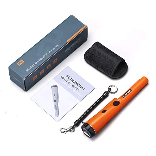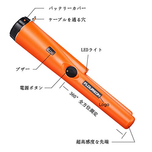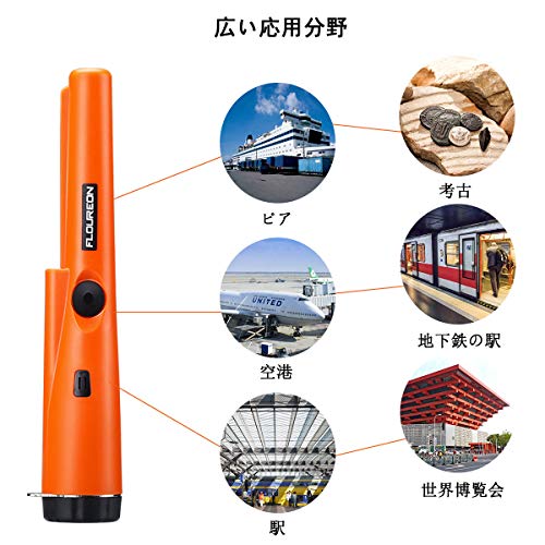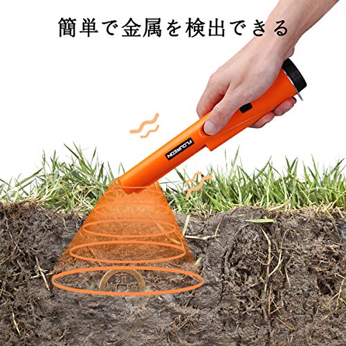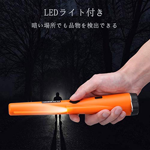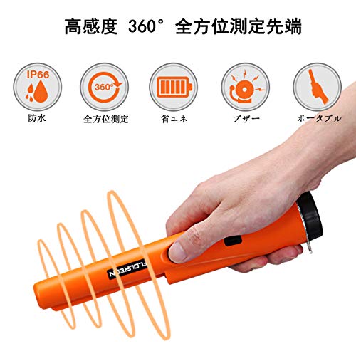 FLOUREON 金属探知機 ゴールド検出器 検針器 ハンド式 金属検出機 宝探し 持ち物検査 おもちゃ LEDライト付き 高感度 軽量 防水 レジャー用品 オレンジ