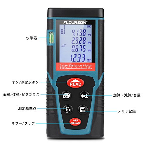 FLOUREON レーザー距離計 携帯型 距離測定器 最大測定距離100M 距離 面積 容積 ピタゴラス 連続測定 自動計算 DIY&日曜大工【日本語取扱説明書付き】