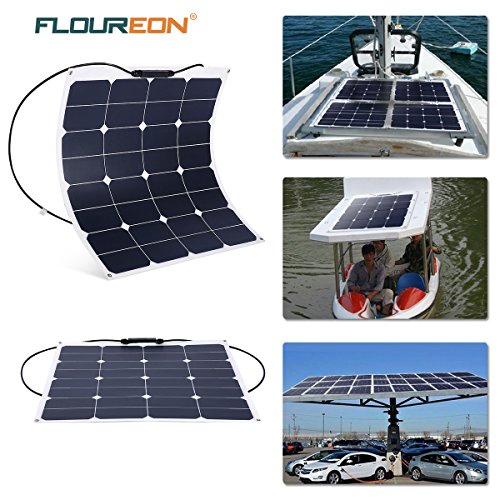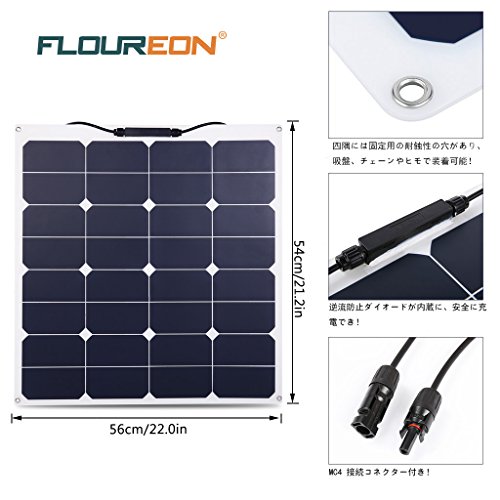 FLOUREON ソーラーパネル 50W 18v 単結晶 ソーラーチャージャー 曲げ可能 太陽光発電 RV キャンピングカー 船舶 テント アウトドア 防災などに活躍【12ヶ月保証付き】