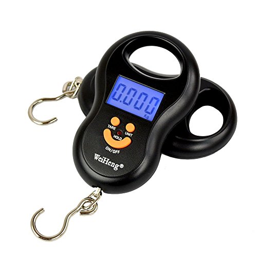 - デジタル式の釣り下げ秤、頑丈で使用も簡単:50kgまでの製品は吊った状態で2秒後にビープ音がし重量の数値があります。精度は、0〜10kgまでは誤差5g 、10〜50kgは誤差10gの精度です