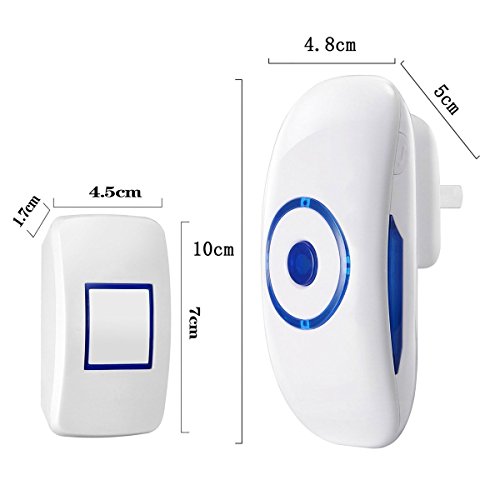MECCION ワイヤレスチャイム ドアベル 防水防塵チャイム 玄関チャイム 300M内受信可 LEDランプ点滅お知らせ チャイム音36種選択可 配線工事不要 家庭用 居酒屋用 介護用 店舗用 (2-1)