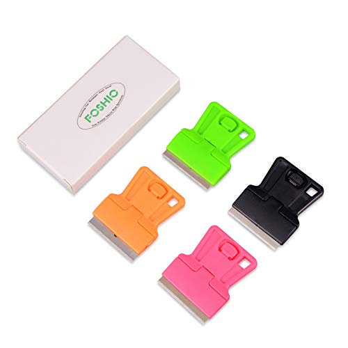 FOSHIO 4パックミニ替刃式スクレーパー(炭素鋼ブレード付き)カービニールラッピングティントツールステッカーリムーバーキッチンスクレーパー蛍光グリーンブラックピンクオレンジ