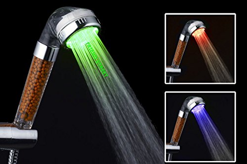 お風呂 が楽しくなる LED シャワー ヘッド お肌に 優しい 活性炭 入り レインボー 3色 タイプ (d 活性炭入り 3色)