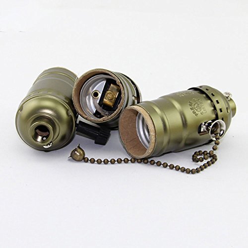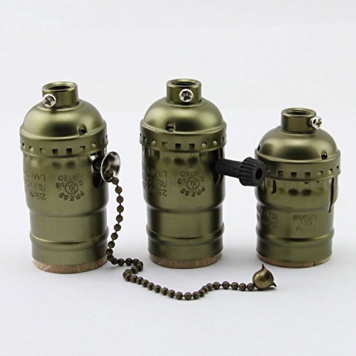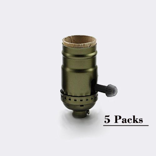 FSLiving アンティークブラスライトソケット産業エジソンランプホルダー金属シェルE26/ E27ベースUL承認 (付ノブ)(DT002-C)(5 Packs)