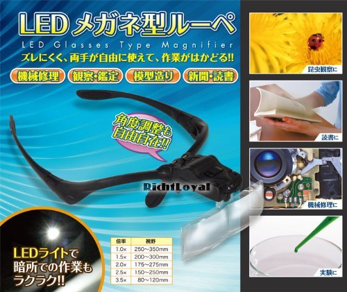 2LEDライト付 メガネ型ルーペ 拡大鏡 めがね LEDライト付 ルーペ、拡大鏡、作業工具、拡大眼鏡 2ウェイ