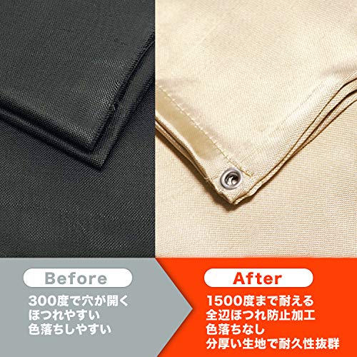 FUJI CAMP 耐火 防炎 スパッタシート 瞬間耐火温度1500度 溶接 薪ストーブ用 (ハトメ有り, 1m*1m)