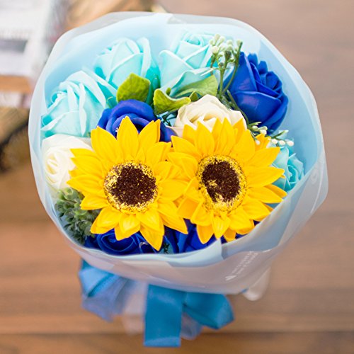 フレグランス ソープフラワー シャボンフラワー 夏にぴったり ひまわり&ローズ 花束 ブーケ FPP-808 (ブルー)