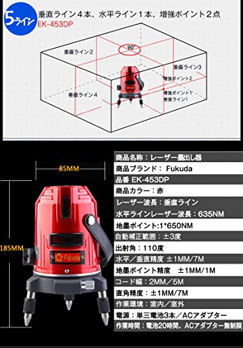 FUKUDA 5ライン レーザー墨出し器+エレベーター三脚セット EK-453DP 4垂直・1水平 自動補正レーザーレベル フクダ 墨出し器 レーザーライン 水平器