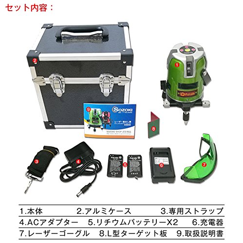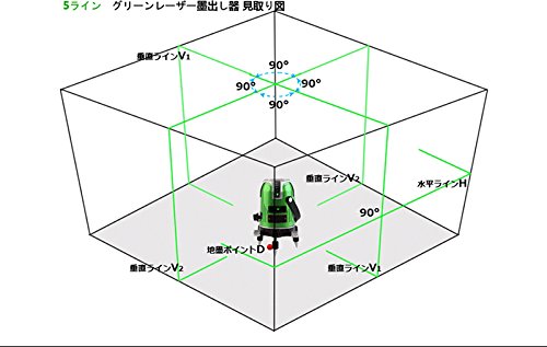 ●光源可視光半導体レーザー波長:垂直と水平面7x635nm;(地墨ポイント:1x650nm)