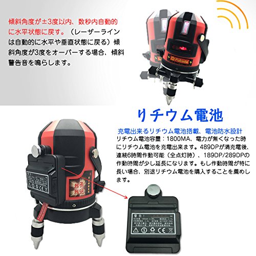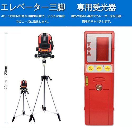 Fukuda 5ライン レーザー墨出し器+受光器+エレベーター三脚セット EK-489DP 4垂直・1水平 自動セルフレベリング 防塵・防水 レーザーライン フクダ 墨出し器