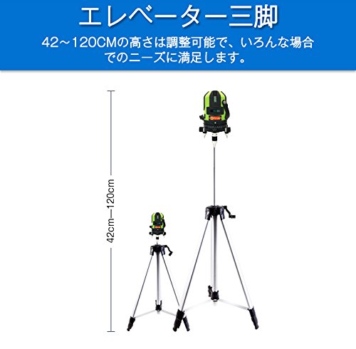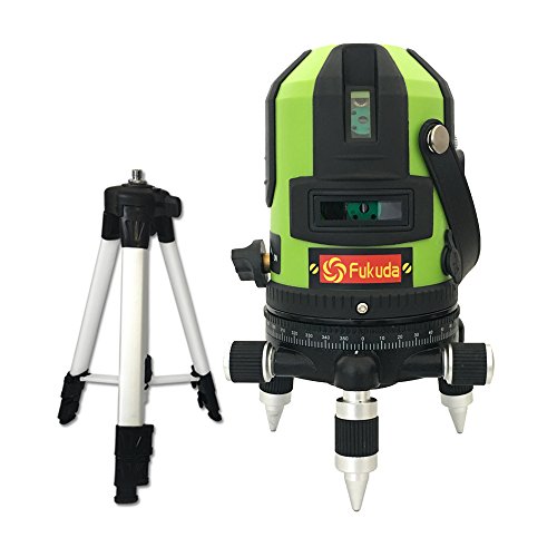 FUKUDA|フクダ 5ライン グリーンレーザー墨出し器 FL-535G 4方向大矩ライン 4垂直・1水平 最新グリーンダイオード 520nm 【本体+エレベーター三脚セット】