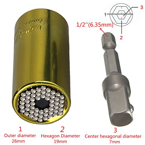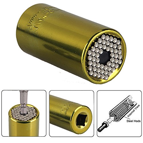 - ソケット内部の58本のスチールピンが三角、四角、六角ナット、トルクスねじ、フックねじ、アイボルトなどの他、多角形ねじやナットをがっちりつかみます。