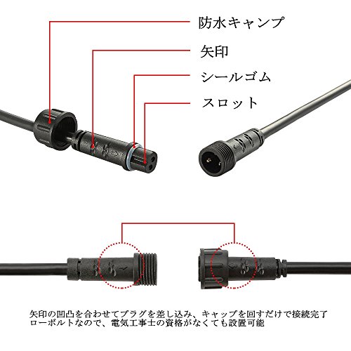 - 【取り付けが簡単】ローボルトなので電気工事士の資格がなくても設置可能です。ただ屋内用じゃなくて防水、防錆機能を搭載しておりますため、屋外にも適用です。また、屋外用延長コードを使い、複数延長は可能!