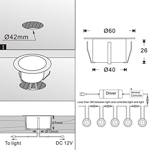 - DC12V(低電圧)内蔵定電流ドライバ、12個LED付き、直視できないほど明るいです。スポット効果が抜群です!